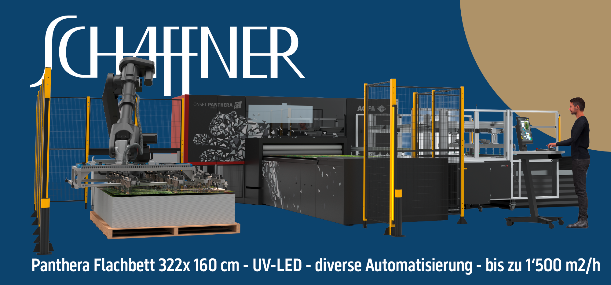 Die Panthera bringt Hochleistungsdruck auf ein neues Niveau. Mit einer Geschwindigkeit von bis zu 1'500 m²/h (entspricht rund 280 Tische / Stunde) vereint sie Präzision, Automatisierung und Nachhaltigkeit in einer einzigen Plattform. Das Ergebnis: Maximale Produktivität bei konstant höchster Druckqualität.